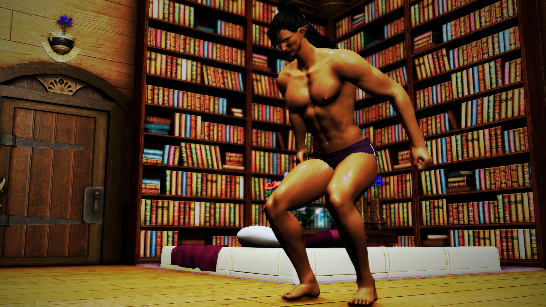 Marce is exploring his sexuality after spending two years in committed, largely sexless relationships. He is highly likely to flirt with anyone he finds attractive, and might pursue further intimacy if encouraged by interested parties.In terms of quickies, one-night stands, and any other other one-off encounters, Marce is pansexual but heavily favors masculine partners. He is submissive and prefers to bottom, but can top if needed or when the mood strikes him.When it comes to longer-term situations, Marce moves more carefully and exhibits demiromantic tendencies.His physical build is that of a standard AMAB humanoid, with no surprises or "bonuses." However, he is taller and more broadly built than Elezen typically are.